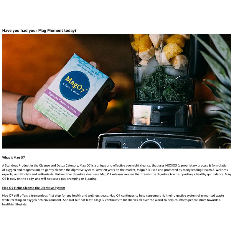 Mag slowly releases oxygen throughout the digestive system. More than just a stool softener Mag O7 releases Oxygen that travels the digestive tract supporting healthy bacteria. A unique and effective oxygen-based overnight cleanse to make your digestive system feel fresh and clean. At NB Pure thats whats driven us for over 25 years. Over time undigested food and waste can build up in the intestinal tract and colon which can be a perfect breeding ground for harmful bacteria. Its something we all strive to do. What would be the side effects of mag 07.