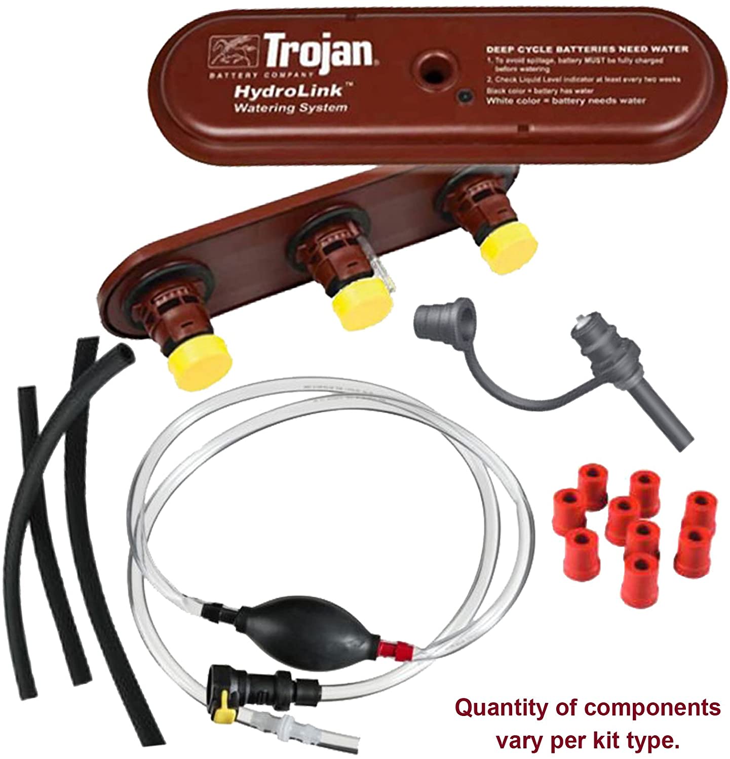 These connectors are available to connect to 14 6mm tubing or 38 10mm tubing. Flow-Rite Hand Pump for Trojan HydroLink Watering System. Flow-Rite Hand Pump Supply for Trojan HydroLink Watering System FAST USA SHIP. Kit 9010300 contains the parts needed for 24V battery models and. Usage of a non-Flow-Rite water supply voids the HydroLink warranty and may damage the battery. Trojan HydroLink Kit for 48V Systems of 4 x 12V Batteries Components 8 x 12V Size Hydrolink Vents 1 x Coupler Dust Cover 1 x Snake TubingTrojan Battery now offers the HydroLink. Tired of the hassle of manually refilling the water in your deep cycle lead acid batteries. With HydroLink a complete set of batteries can be watered in less than 30 seconds. For successful operation Trojan Batterys HydroLink Watering System must use an approved Flow-Rite water supply system.