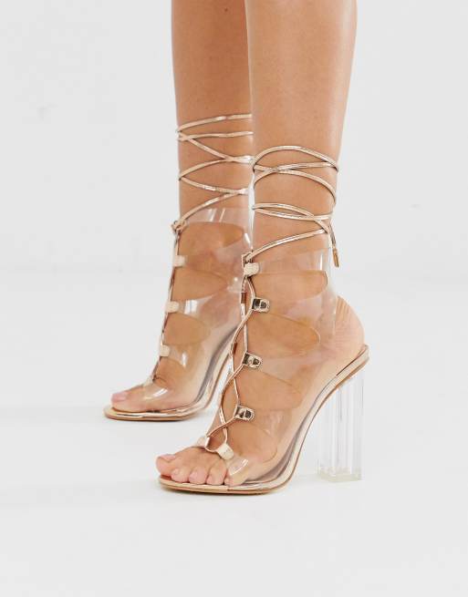 1299 Economy 5-8 Working Days - 299 delivery on all orders over 100. We wont leave you hangin when it comes to finding that perfect pair of lace-up heels. Mango features a clear perspex upper with rose gold and nude lace up details and a clear perspex block high heel.